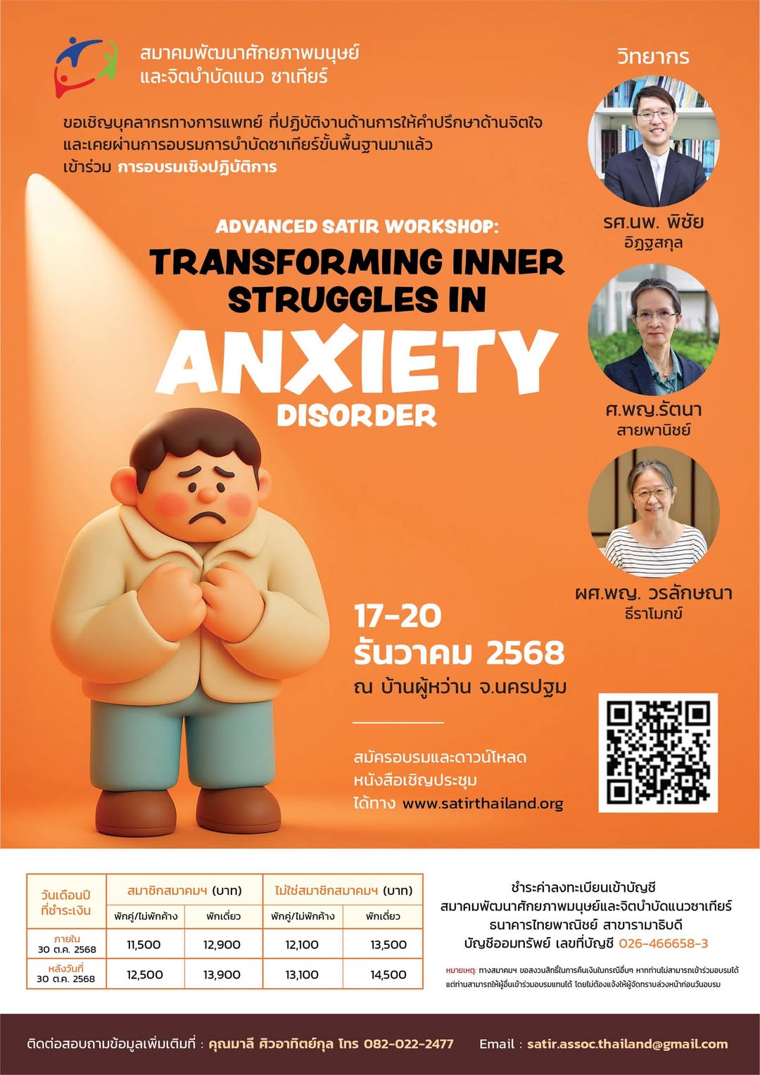 • เพื่อให้ผู้เข้าร่วมมีความมั่นใจ และมีความสามารถในการใช้ satir model ในการช่วยเหลือทางด้านจิตใจผู้ป่วยโรควิตกกังวล